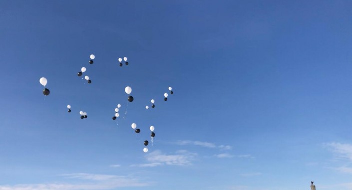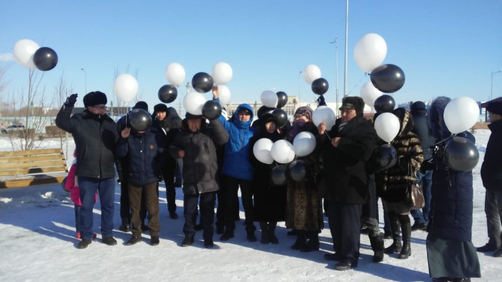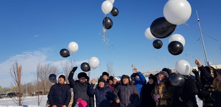 В Актобе в память о погибших в пожаре сестрах запустили в небо черные шары.