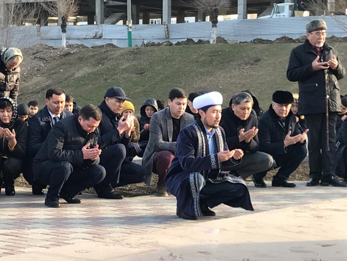 Один из инициативных алматинцев прочитал молитву по мусульманским традициям.