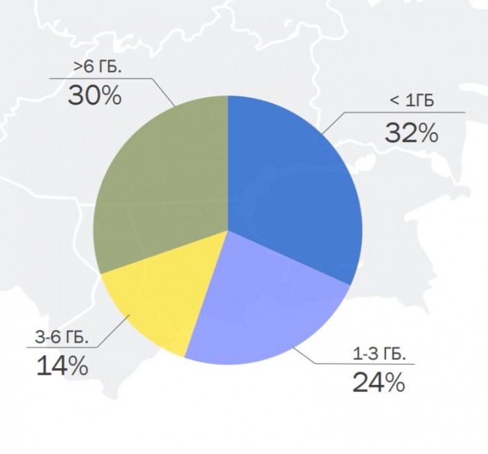 По данным компании, каждый пятый владелец смартфона не использует мобильный Интернет вовсе. Доля пользователей, использующих 1-3 гигабайта интернет-трафика, также возросла - на пять процентов. Доля самых активных интернет-пользователей (свыше шести гигабайт в месяц) выросла на шесть процентов. Все это свидетельствует о неуклонном росте потребления интернет-трафика в Казахстане.