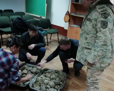 Казахстанец пытался вывезти в Россию чемодан с сотней черепах Фото пресс-службы Погранслужбы КНБ