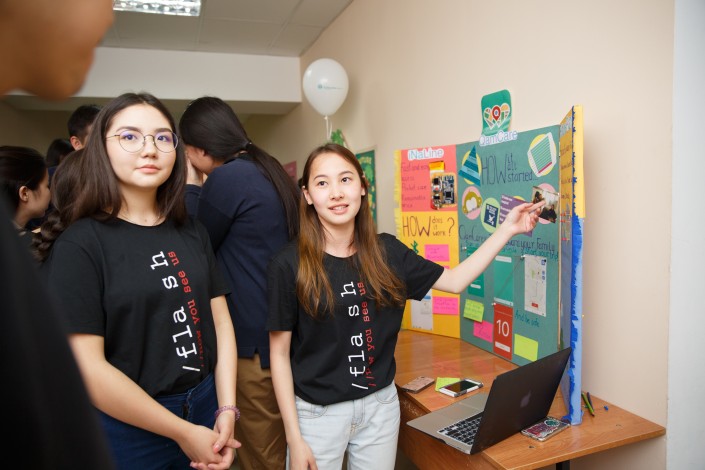 Команда из четырех девочек старших классов алматинских школ под названием "/flash" представила на Всемирном Питчинге, устраиваемом на  Technovation Challenge, мобильное приложение QamCare для повышения безопасности подростков.
