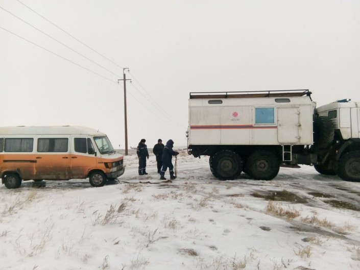 Кроме того, в 120 километрах от Жезказгана в результате гололедных явлений на трассе остановился пассажирский автобус сообщением Караганда - Жезказган. Для эвакуации пассажиров из Жезказгана на место направлен специальный транспорт повышенной проходимости (вахтовка) специализированной пожарной части № 42 службы пожаротушения и аварийно-спасательных работ ДЧС Карагандинской области.