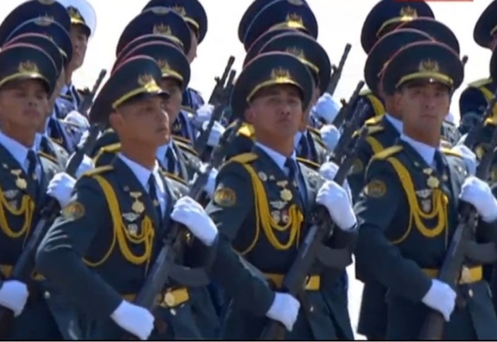 От Казахстана в параде приняла участие рота почетного караула Аэромобильных войск Вооруженных сил РК. По главной площади Китая прошли 32 "коробки" военнослужащих, из них 15 - отряды страны-хозяйки. Казахстанцы прошли седьмыми по счету среди иностранных войск под звуки китайского марша.