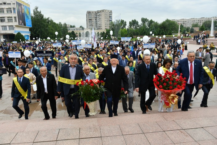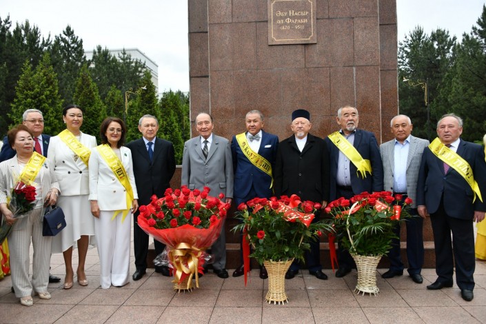 Возложение цветов к памятнику аль-Фараби. Фото предоставлено пресс-службой КазНУ имени аль-Фараби