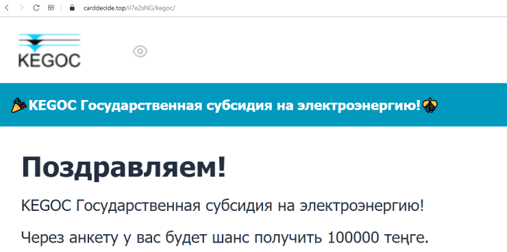 Cсылка на фишинговый сайт якобы с опросом от АО KEGOC распространяется в казахстанском сегменте Интернета. Об этом предупредила пресс-служба компании, передает Tengrinews.kz.