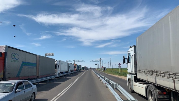 Километровые пробки образовались на границе Казахстана с Россией
