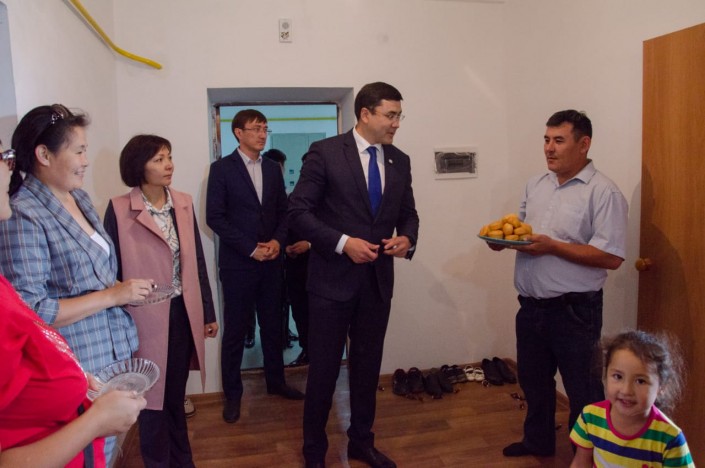 Вместе с ними заместитель акима осмотрел и новые квартиры. Между очередниками категории "многодетная семья" были распределены 150 квартир, категории "социально уязвимые слои населения" - 148.