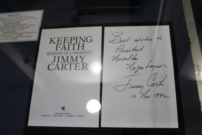 "С наилучшими пожеланиями президенту Нурсултану Назарбаеву", - так подписал свои мемуары Картер в 1992 году.