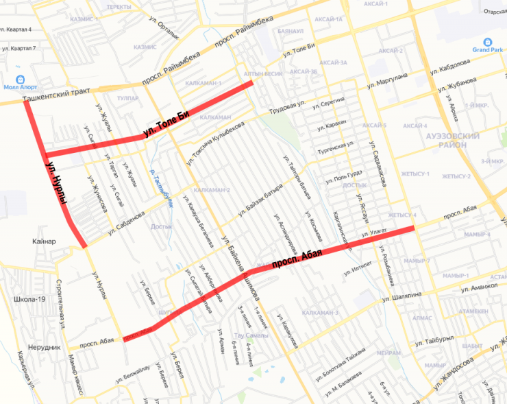 Отметим, что улицу Толе би пробьют до улицы Нурлы. Это центральная улица в новом центре Наурызбайского района. Здесь расположены акимат, ЦОН и другие районные ведомства. К улице Нурлы также подведут проспект Абая. Далее улицу Нурлы пробьют до проспекта Райымбека.