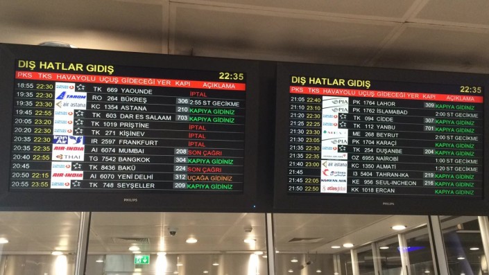 Между тем в аэропорту Астаны информацией об отмене рейсов не владеют. В справочной отмечают, что рейс из Стамбула в Астану задерживается только на несколько часов и прилет ожидается в 06.00 по времени Астаны.