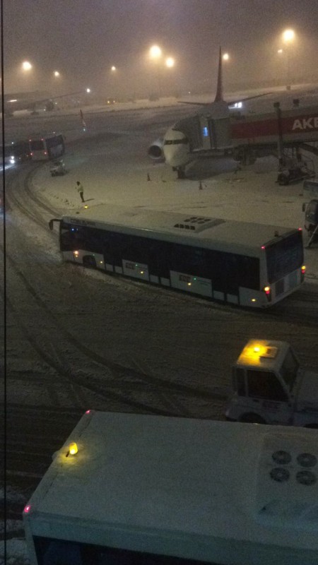 "На гейте персонал только по-турецки говорит. Спросил по-английски, ответили показом фотографии снегоуборочной техники. (...) Нет ни еды, ни вопросов", - заявляют застрявшие в Стамбуле казахстанцы. Они отметили, что сотрудники аэропорта и представители авиакомпаний не объясняют причин отмены рейсов. Сами туристы предполагают, что такая ситуация возникла в связи с погодными условиями, поскольку в Стамбуле идет снег. По их данным, застрявшим в аэропорту туристам не предоставляют еду и номера в гостинице.