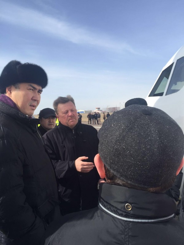 Асет Исекешев беседует с экипажем аварийно севшего самолета. Фото МИР РК