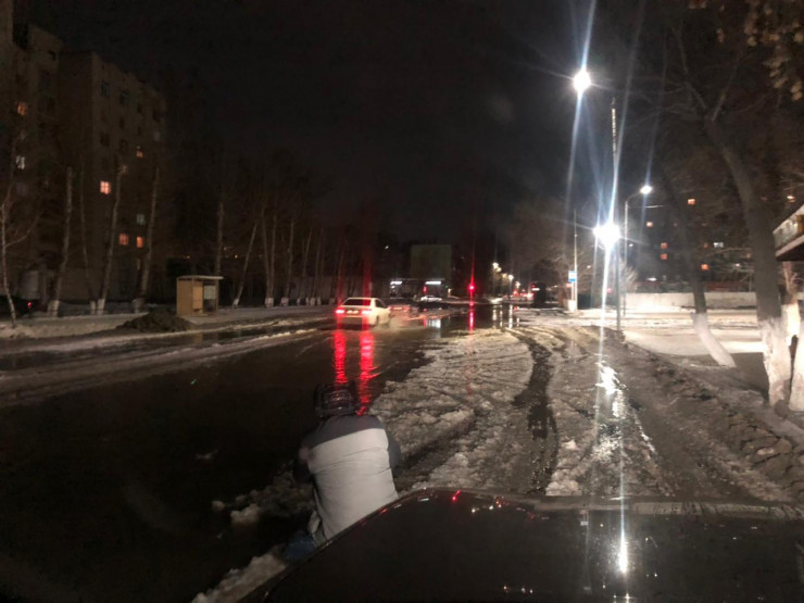"В связи с проведением работ по устранению порыва временно перекрыто движение автомобильного транспорта по улице Катаева в границах от улицы Шевченко до Толстого. Кроме того, отключено от водоснабжения 18 многоквартирных жилых домов и прочих объектов по улице Катаева", - отметили в пресс-службе акима Павлодара.