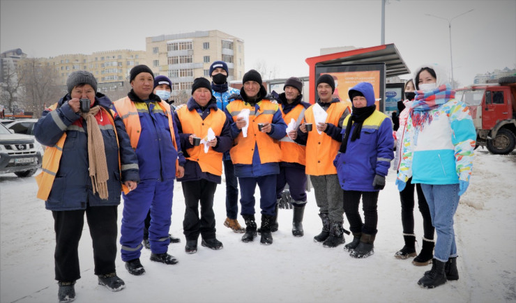"Мы раздаем горячий чай и баурсаки с желанием помочь сотрудникам, задействованным в уборке города от снега. Мероприятие проходит в рамках "Марафона добрых дел", - сообщил руководитель отдела управления по вопросам молодежной политики города Акулан Тастемир.