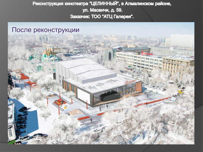 Как будут выглядеть после реконструкции ТРЦ "Алмалы", кинотеатр "Целинный" и какие новые здания появятся в Алматы, показали в городском управлении архитектуры и градостроительства, передает корреспондент Tengrinews.kz.