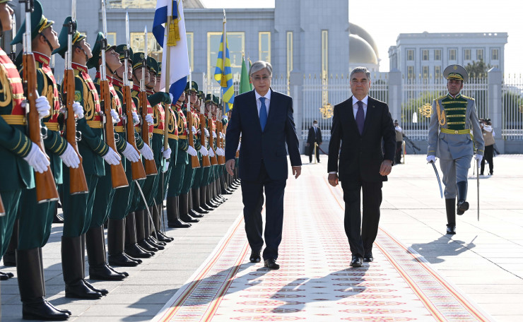 Переговорам на высшем уровне предшествовала официальная церемония встречи на площади Независимости. Начальник почетного караула отдал рапорт лидерам двух стран, были исполнены государственные гимны Казахстана и Туркменистана. Затем Касым-Жомарт Токаев и Гурбангулы Бердымухамедов обошли строй почетного караула и представили друг другу членов официальных делегаций.