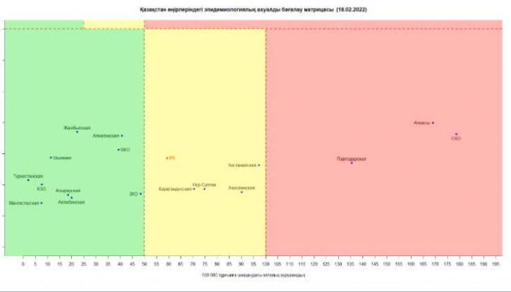 - в "красной" зоне находятся Алматы, а также Павлодарская и Северо-Казахстанская области;