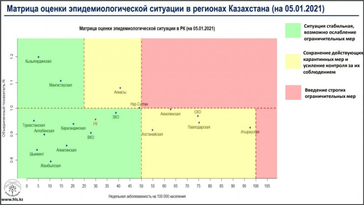 Согласно обновленным данным, в "красной" зоне по коронавирусу нет ни одного казахстанского региона. Последней отсюда вышла Атырауская область, она "перебралась" в "желтую" зону. В ней также находятся Алматы, Нур-Султан, Акмолинская, Костанайская, Павлодарская, Северо-Казахстанская области.