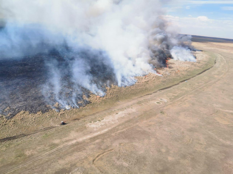"В настоящее время ведутся работы по тушению пожара. Предварительная площадь горения составляет более 100 гектаров. На месте проводится работа по нераспространению пожара. В населенный пункт прибыли первый заместитель акима области Нуржауган Калауов и начальник ДЧС Актюбинской области Маргулан Аманбаев. Угрозы населенному пункту нет, жертв и пострадавших нет", - сообщили в ведомстве.