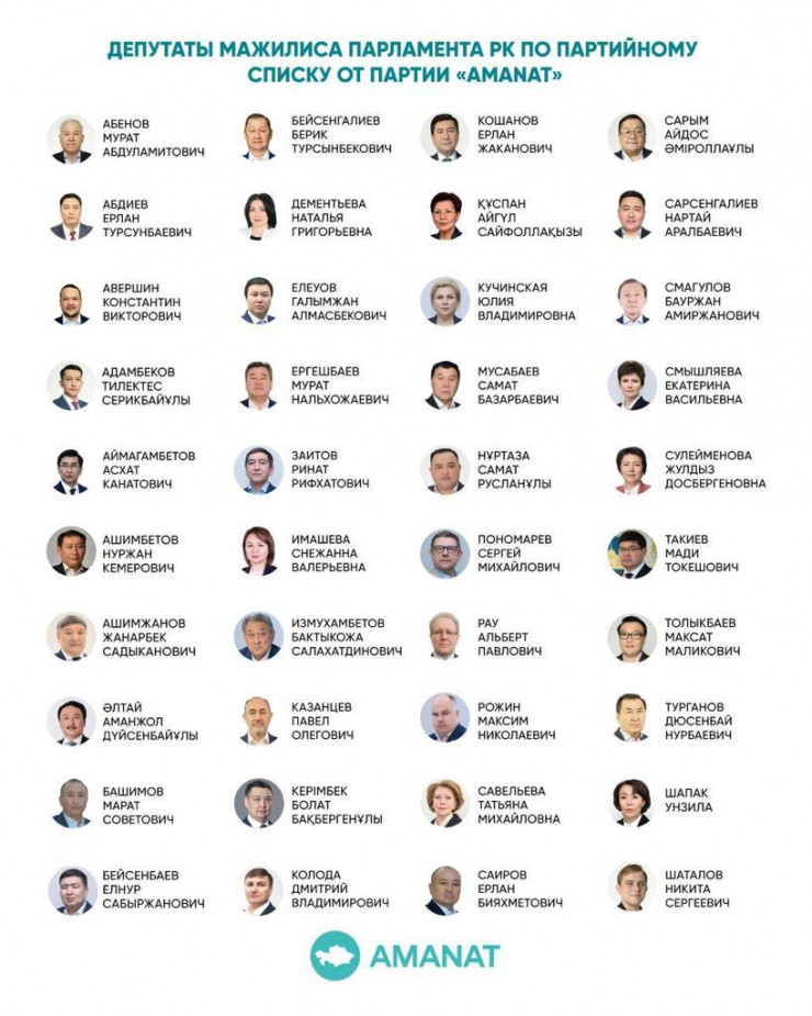 Помимо членов партии Amanat, по одномандатным округам победили и самовыдвиженцы. Всего их семеро.
