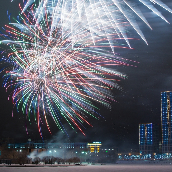 В ночь с 31 декабря на 1 января жители и гости Нур-Султана смогут увидеть новогодний фейерверк, который по традиции удобнее всего наблюдать с набережной реки Есиль, с территории Ботанического сада, а также на пересечении проспекта Абылай хана и улицы Пушкина.