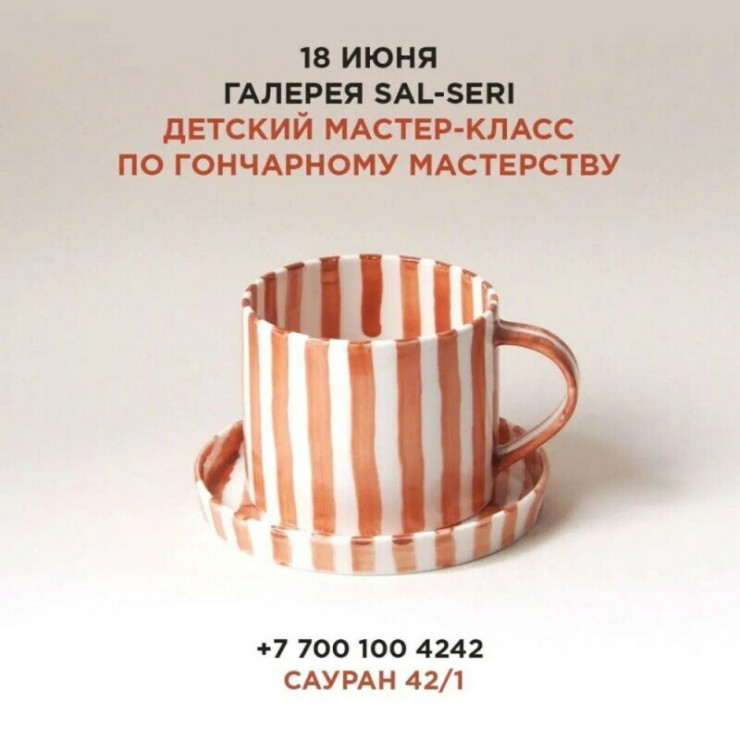 Галерея Sal-Seri приглашает вас на детский мастер-класс по гончарному искусству. В галерее вам предоставят все необходимые инструменты и материалы, а также вас ожидает располагающая атмосфера.