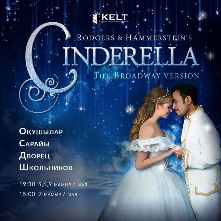 Kazakhstan English Language Theater (KELT) представляет мюзикл "Золушка" Роджерса и Хаммерстайна. Классическая сказка, полная неожиданных поворотов, завораживающих преображений и прекрасной музыки. Это первый лицензированный Бродвейский мюзикл, произведенный в Казахстане.