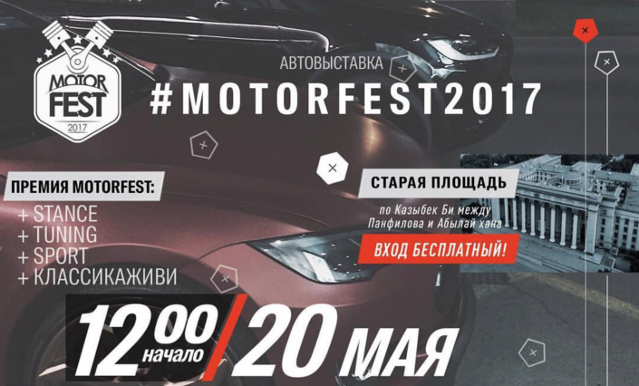 На площади перед КБТУ пройдет автовыставка Motor Fest 2017. По заверениям организаторов, гостей ждут  лучшие тюнинг-проекты, автомобильная экзотика, маслкары и легенды классики, множество развлечений и огромное количество призов и подарков. Особое внимание уделяется премии MotorFest, в рамках которой владельцы лучших авто поборются за солидные денежные призы и подарки.