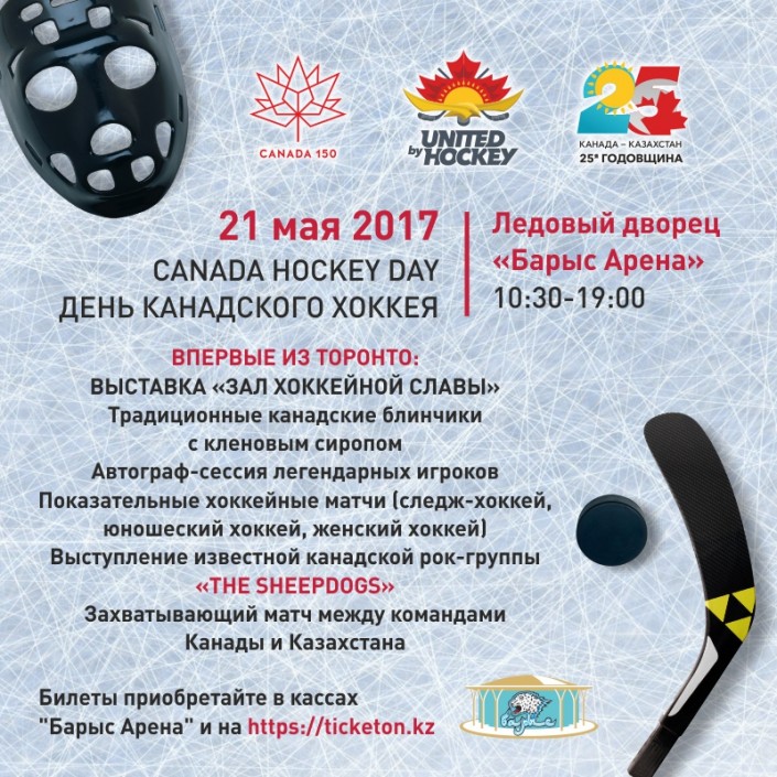 В Астане в это воскресенье состоится Canada Hockey Day (День канадского хоккея). В ледовом дворце "Барыс Арена" организаторы обещают провести фото- и автограф-сессии с легендарными игроками хоккея, дегустацию традиционных канадских блинчиков с кленовым сиропом и показательные хоккейные матчи. Кроме того, в программе планируется лотерея с розыгрышем ценных призов и памятных сувениров и выступление известной канадской рок-группы The Sheepdogs.