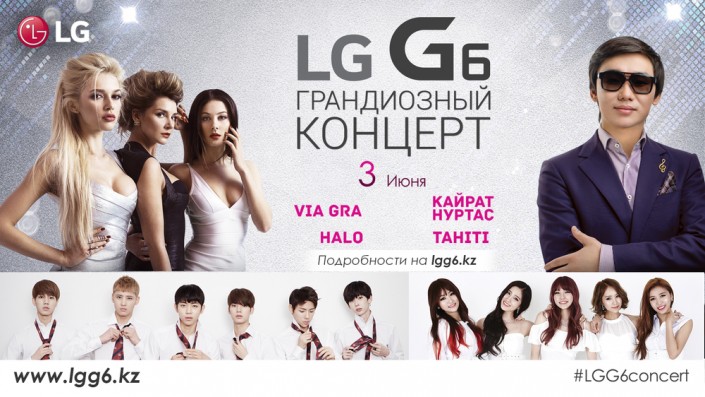 На "Алматы Арена" состоится грандиозный концерт LG G6. В мероприятии примут участие такие звезды, как ВИА ГРА, Кайрат Нуртас, TAHITI и Halo.