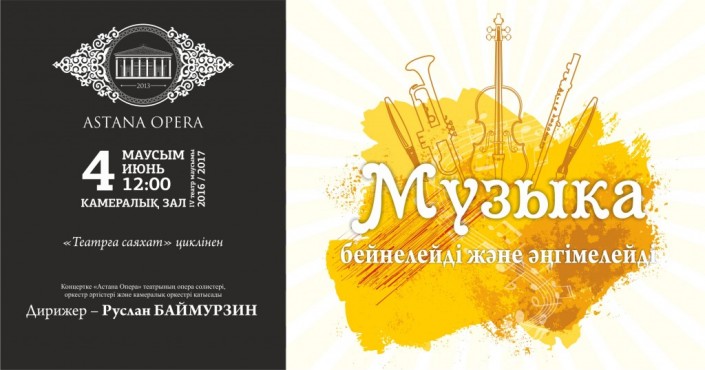 Для своих юных зрителей "Астана Опера" представляет новый музыкальный проект из цикла "Поход в театр" - "Музыка рисует и рассказывает". В концерте прозвучат произведения композиторов-классиков, в которых ярко выражено изобразительное начало: "Полет шмеля" Римского-Корсакова, "Лунный свет" Дебюсси, "Балет невылупившихся птенцов" Мусоргского, "Кукушка" Куперена, "Слон и Моська" Брусиловского и многие другие. Музыковеды расскажут маленьким зрителям много интересного о возможностях инструментов, о том, какими музыкальными красками рисуют композиторы свои картины. Концерт будет сопровождаться песочными рисунками на экране.