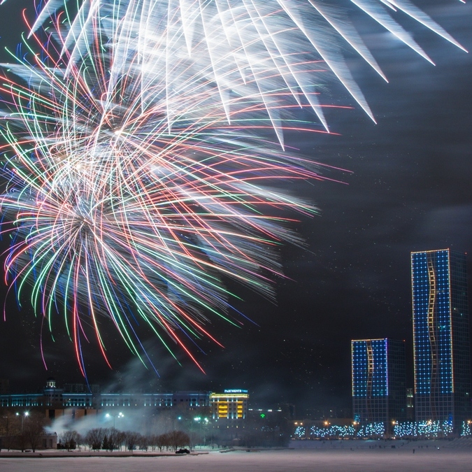 Новогодний фейерверк прогремит в ночь с 31 декабря на 1 января в трех местах: на набережной реки Есиль, возле территории за ТРЦ "Хан Шатыр" и в сквере на пересечении проспекта Абылай хана и улицы Пушкина.