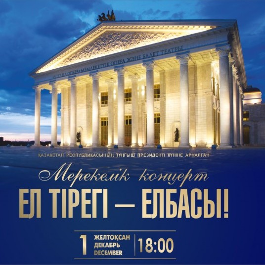 В Большом зале "Астана Опера" в честь праздника состоится концерт "Ел тірегі - Елбасы!" с участием солистов оперы и балета, хора и симфонического оркестра. В программе: сцены, дуэты и арии из опер "Биржан - Сара" Тулебаева, "Камар-сулу" Рахмадиева, "Семирамида" Россини, "Кармен" Бизе, "Абай" Жубанова и Хамиди, а также казахские народные песни, вокальные композиции, па-де-де и танцы из балетов.