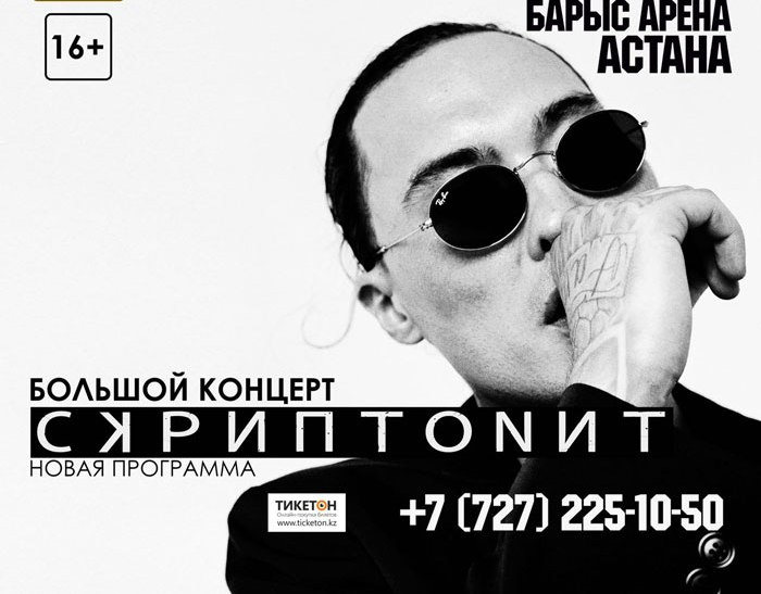 На сцене "Барыс Арены" пройдет большой концерт Скриптонита. Скриптонит (Адиль Жалелов) - казахстанский рэп-исполнитель и битмейкер, участник российского лейбла Gazgolder. Впервые громко заявив о себе в 2013 году видеоклипом на песню VBVVCTND, спустя два года Скриптонит выпустил свой дебютный альбом "Дом с нормальными явлениями", который стал одним из самых удачных русскоязычных рэп-альбомов 2015 года.