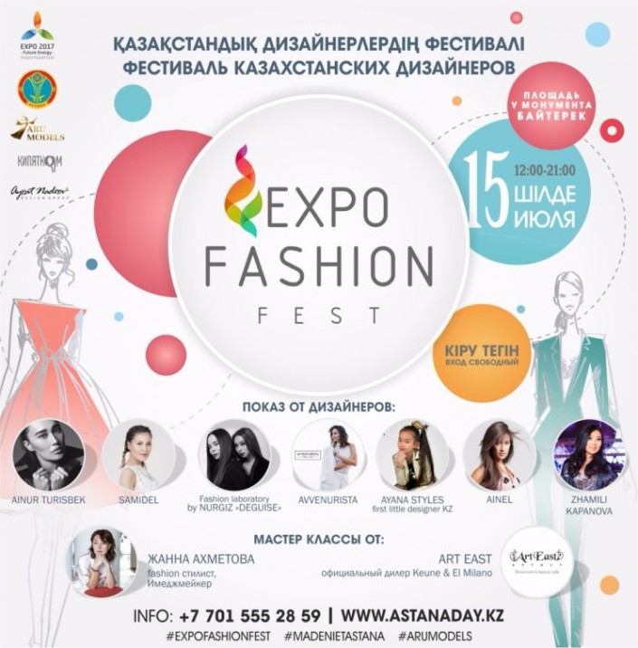 На площади у монумента "Байтерек" в рамках выставки EXPO-2017 пройдет первый модный фестиваль казахстанских дизайнеров EXPO Fasion Fest. Гостей ждут шоу-румы, мастер-классы по стилю, визажу и секретам идеального макияжа.