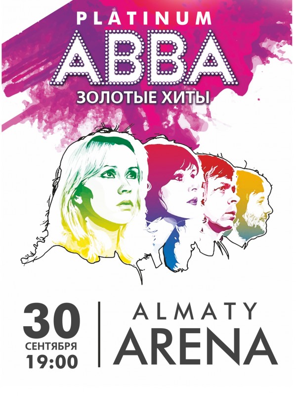 30 сентября на сцене "Алматы Арена" по случаю празднования Дня города и при поддержке акимата Алматы - ваши самые любимые хиты от группы ABBA PLATINUM из Великобритании.