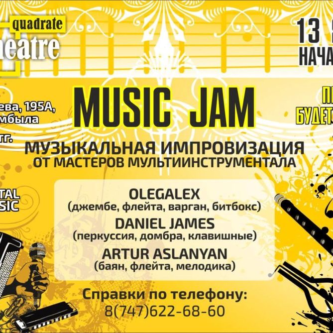 Музыкальный театр Quadrate (улица Муратбаева, 195А) приглашает жителей и гостей Алматы на импровизационный концерт мультиинструменталистов.