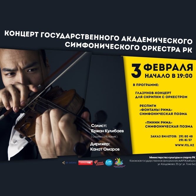 В эту субботу на сцене Казахской  филармонии имени Жамбыла состоится концерт Государственного симфонического академического оркестра. Солистом выступит Ержан Кулибаев.