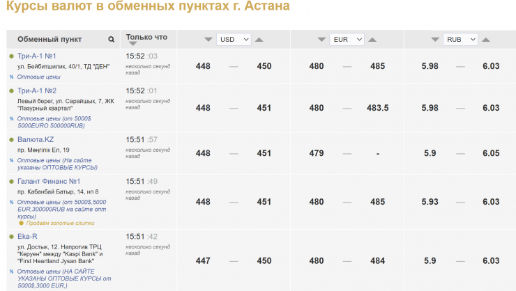 А в некоторых обменниках Алматы покупка достигла 5,85 тенге за рубль.