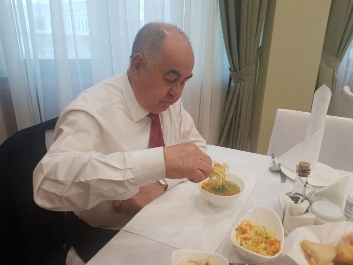 "Раз в неделю где-то, обычно в субботу или воскресенье, приезжаю к бабушке (супруге - прим. автора), она мне на неделю всякого приготовит, я подогрею и готово. Супруга моя в Кокшетау, а я здесь. Там врачи наши, давно лечат нас и знают все. В этом плане лучше не рисковать. Один врач одно советует, другой - другое. И все они друг друга опровергают. Я сам чаще всего там лечусь", - говорит депутат.
