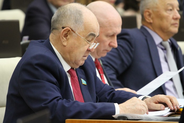 Сегодня традиционное пленарное заседание Мажилиса перенесли на 9 утра. Поэтому депутат занимается перечитыванием депутатского запроса и выступления, которое он будет озвучивать в ходе заседания.