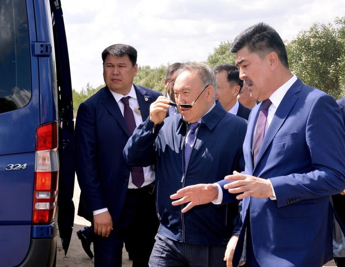 На еще одной фотографии Елбасы сопровождает бывший вице-министр сельского хозяйства, ныне вице-министр экологии, геологии и природных ресурсов Ерлан Нысанбаев.