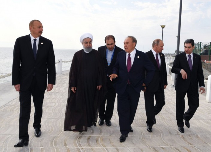 Нурсултан Назарбаев вместе с президентами Азербайджана Ильхамом Алиевым, Ирана Хасаном Рухани, России Владимиром Путиным, Туркменистана Гурбангулы Бердымухамедовым выпустили мальков осетра в Каспийское море, передает корреспондент Tengrinews.kz со ссылкой на пресс-службу Акорды.
