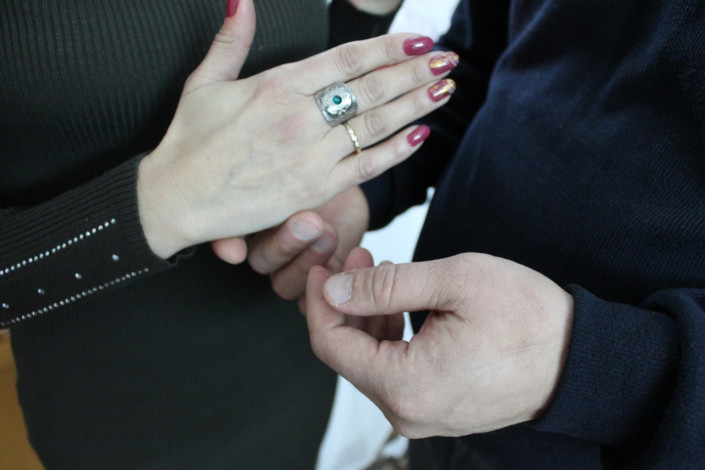 Подготовка к регистрации не заняла много времени. Расписавшись, молодые надели друг другу обручальные кольца. Для регистрации Жанара привезла с собой бижутерию. Проносить золотые изделия в колонию запрещено. Любимой супруге Асхат подарил кольцо, которое выточил сам из обычного куска железа. Неожиданный подарок растрогал невесту до слез.