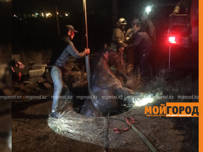Лошадь из септика вытащили актюбинские спасатели Фото:mgorod.kz