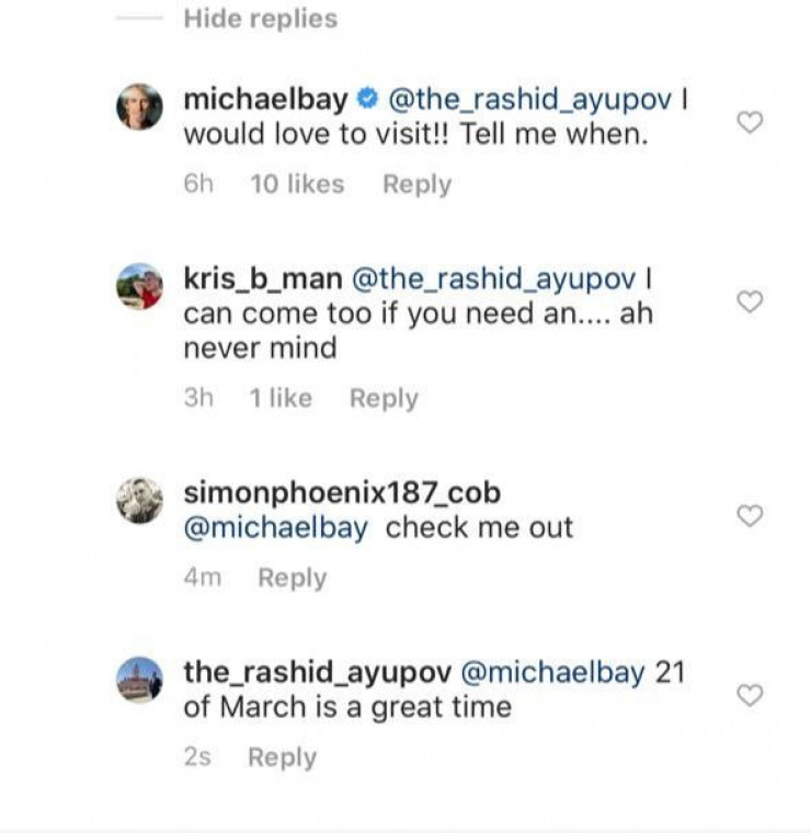 Майкл Бэй принял приглашение акима Туркестана Фото: instagram.com/michaelbay