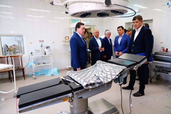Глава Правительства РК побывал в жилых массивах "Коктем-1" и "Коктем-2", где расположены многоквартирные и частные дома, осмотрел поврежденные здания местной школы, городской больницы и Центра обслуживания населения.