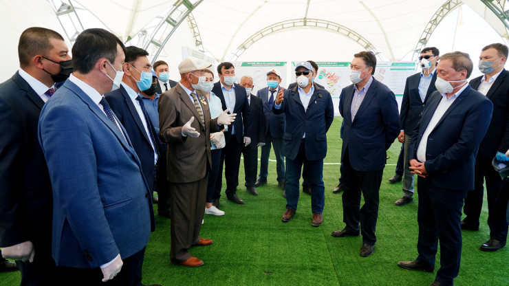 Глава правительства осмотрел посевные площади, материально-техническую базу и продукцию ведущих сельхозпроизводителей Туркестана, провел встречу с местными фермерами и обсудил с ними планы по дальнейшему развитию агропромышленного бизнеса в регионе.