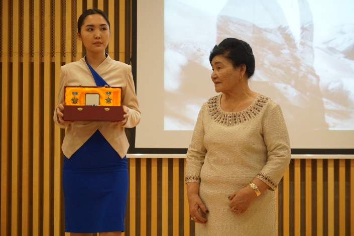 Матери заслуженного деятеля Казахстана, известного певца и композитора Батырхана Шукенова вручили памятную медаль "Ветеран Афганской войны", посвященную 10-летию вывода войск из Афганистана, передает корреспондент Tengrinews.kz.