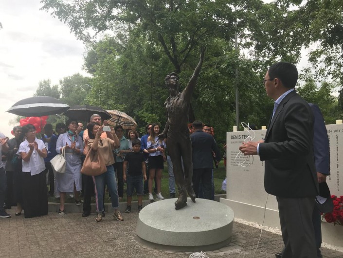 "Мы выражаем благодарность Оксане Алексеевне, потому что каждая деталь, каждый штрих, в целом вся работа была проведена под ее руководством. В целом общество и тем более подрастающее поколение должны помнить, мы не должны забывать, каким был Денис - его победы и светлый образ. Это все должно вдохновлять на новые победы подрастающее поколение казахстанцев. Именно с этой целью мы сегодня собрались открывать памятник", - сказал Арман Кырыкбаев.